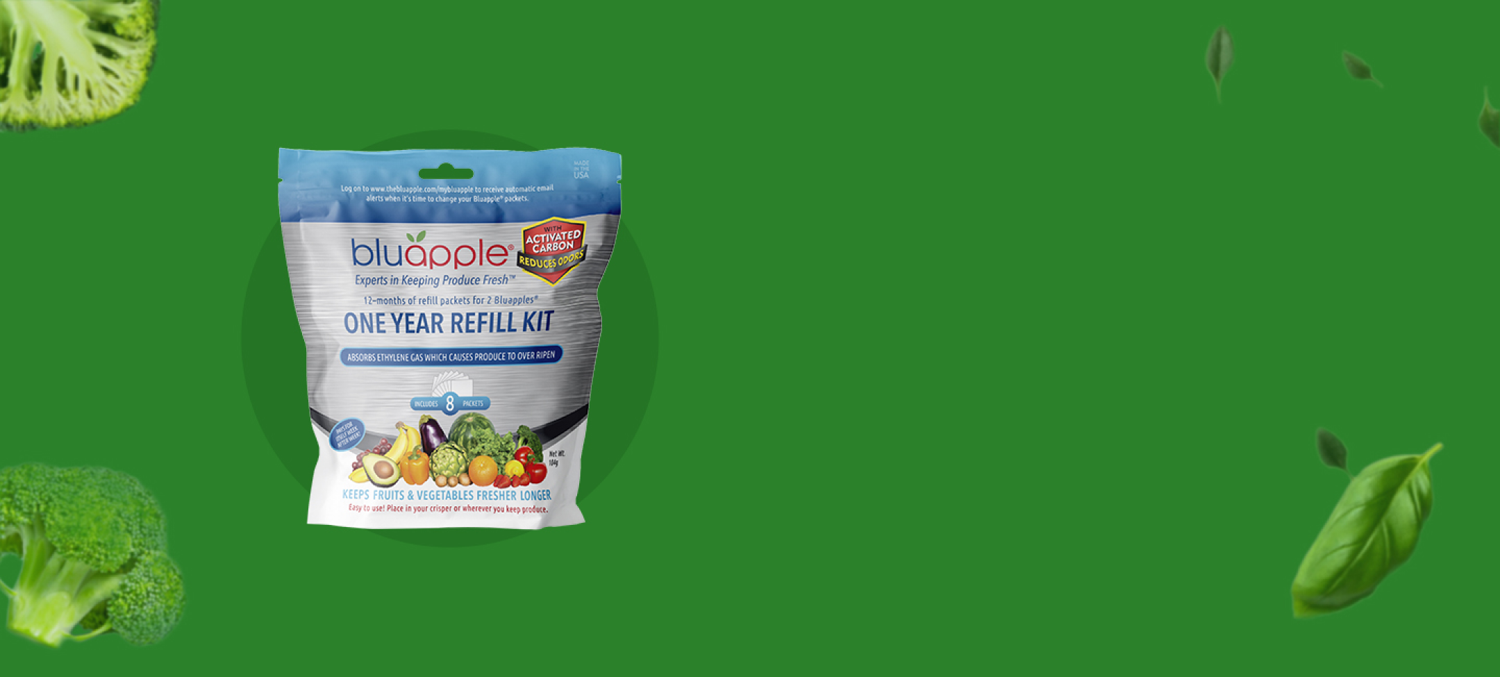 Place a packet into each Bluapple Produce Saver and place in the fridge. Stop throwing away produce and start saving money!